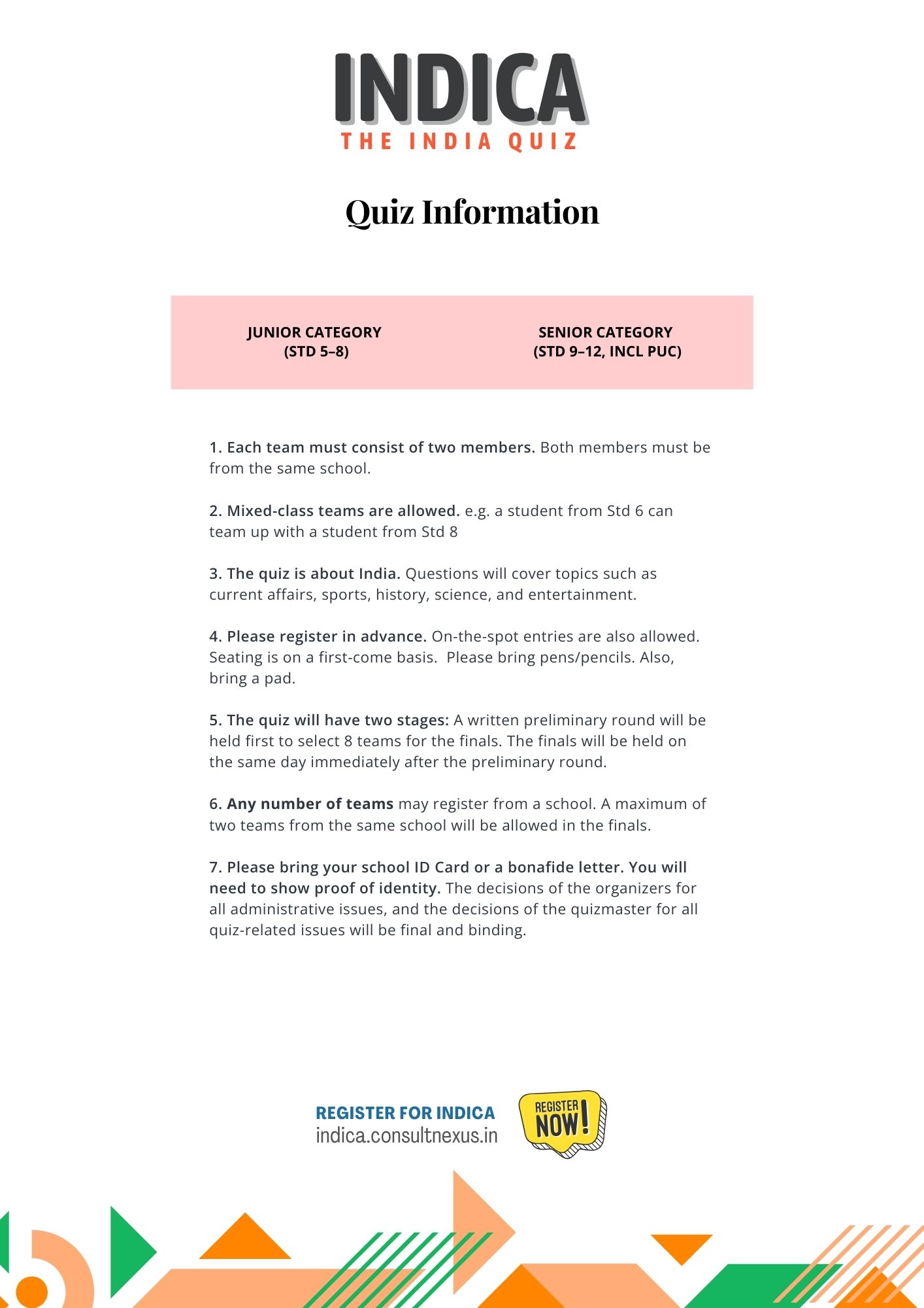 Prior registration for Indica is desirable. It will help us determine seating etc. Fill the form accurately to ensure you receive all communication.